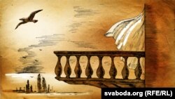 «Пакой быў даволі вялікі, сьветлы, меў выгляд на мора, на другім паверсе, з асобнай лесьвіцай і абсалютна ізаляваны: хоць крычы, хоць грукачы — ніхто не пачуе (гаспадыня жыла ўнізе) і не дапаможа».