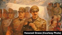 Вячорка: Усе гэтыя творы мастацтва можна падзяліць на дзьве групы, як падзеленае і беларускае грамадзтва — за і супраць. І тут таксама ёсьць пралукашэнкаўскія творы, дзе Лукашэнка паказаны як моцная, манумэнтальная ўлада, найбольш знакаміты апошні партрэт Сафронава. А ёсьць мастакі альтэрнатыўныя, якія за гэта пацярпелі. Напрыклад, росьпіс Алеся Пушкіна, які ён зрабіў у царкве ў Бабры. Ходзіць пра гэта легенда. Яго папрасілі расьпісаць сьцяну, ён гэта зрабіў, а потым, калі прыйшла камісія, сказалі: «Як гэта так, што ў вас Лукашэнка сярод грэшнікаў, якія трапяць у пекла...». Ён кажа: «Добра, я зараз замалюю», і замаляваў, а праз дзень гэта праявілася. Справа ў тым, што Пушкін выкарыстоўваў адмысловую фарбу, а чыноўнікам сказаў, што гэта божая воля. Ёсьць, напрыклад, твор Аляксея Марачкіна, за які ён мог трапіць у турму ў 2008 годзе. Ён называецца «Лялькі». Тут мы бачым усіх ідэолягаў і прапагандыстаў.