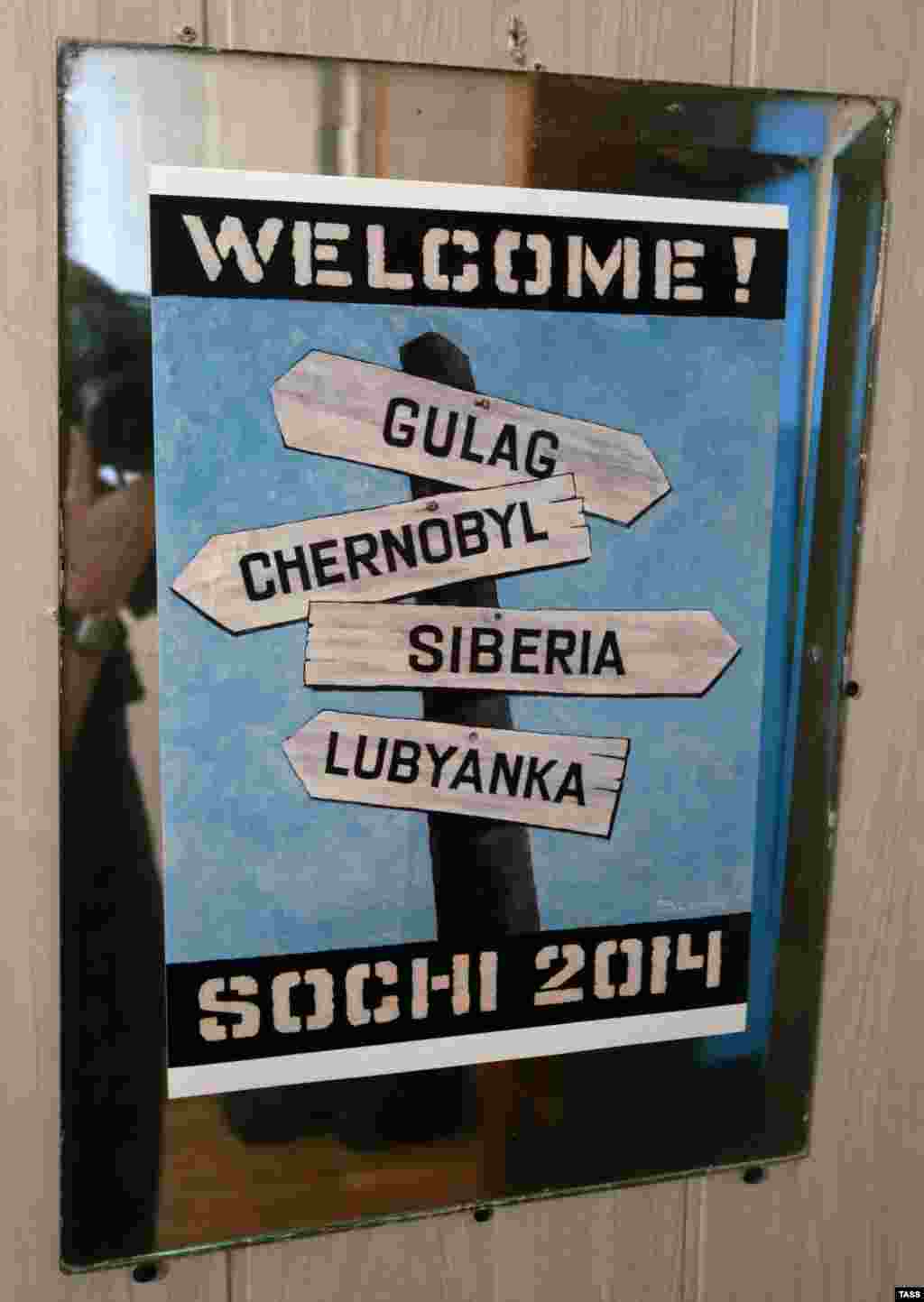Пакуль Расея рыхтуецца прыняць зімовыя Алімпійскія гульні 2014 году ў Сочы, мастак Васіль Слонаў арганізаваў выставу сатырычных малюнкаў, дзе парадуецца дзяржаўная піяр-кампанія па прасоўваньні Алімпіяды ў Сочы. У сэрыі постэраў ён сумясьціў спартовыя сцэны і застрашальныя вобразы рэпрэсіўнай Расеі. Выстава была зладжаная падчас культурнага фэстывалю «Белыя ночы» у Пярмі, гэтая выстава хутка зьвярнула на сябе ўвагу ўладаў: яе зачынілі і звольнілі куратара Пермскага музэю сучаснага мастацтва, дзе яна праходзіла. У якасьці афіцыйнай падставы было названае несанкцыянаванае выкарыстаньне Слонывым сымболікі Алімпіяды ў Сочы.