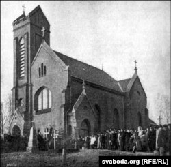 — У 30-я былі, вядома. Я ж сама з 30-га году. Помню, што малая бегала ўсё туды. І касьцёл я добра помню. Ужо, мусіць, не ўваскрэсьне. Надта дарагі касьцёл быў. Як якое сьвята, усе вёскі прыяжджалі сюды. Хто на конях едзе, хто пяшком ідзе. Галоўны храм. Паверхаў многа. Вокны. Помню, шкельцы зьбіралі мы. Рознакаляровыя. Вітражы.