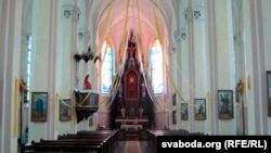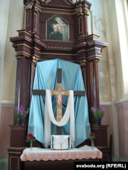 — Цудам захаваліся алтары. Толькі трохі іх адбудоўвалі. Гэта алтары, якія перанесеныя са старога касьцёла. Сярэдзіна 18-га стагодзьдзя. Яны не зусім адпавядаюць стылю. Барочныя, старыя алтары.