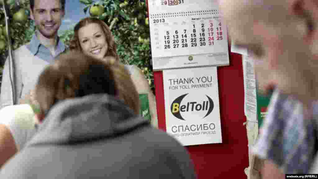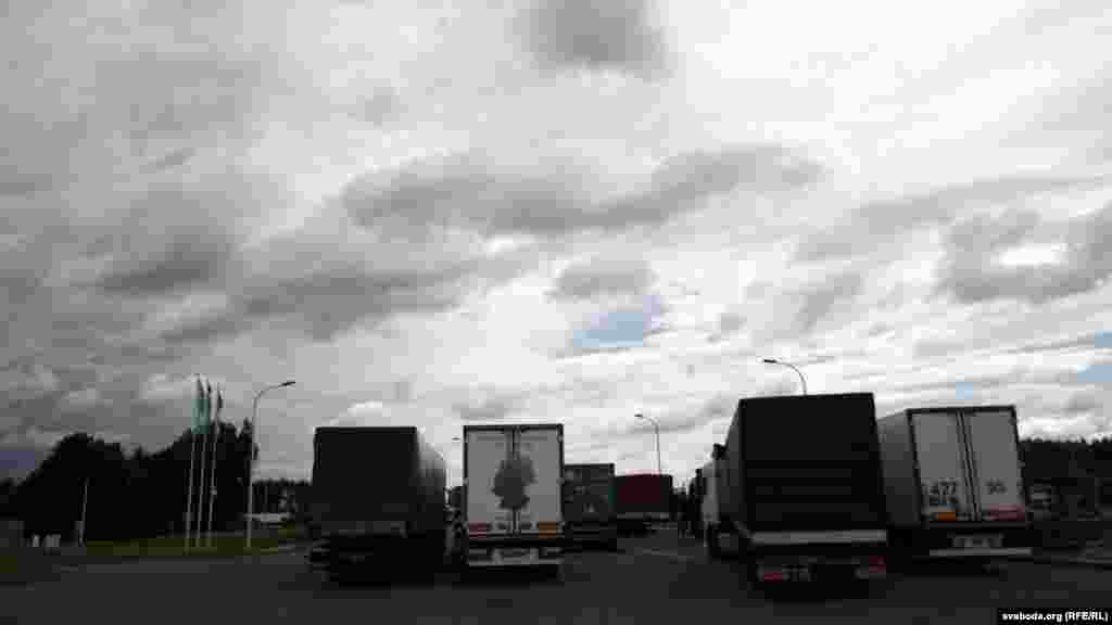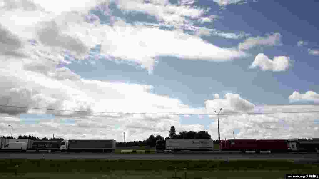 Чарга на запраўцы № 38 “Беларуснафты”. 57 кілямэтар трасы Менск – Гародня. Апэратар нацыянальнай электроннай сыстэмы збору платы за праезд па шэрагу аўтадарог Беларусі заявіў, што перавозчыкі маглі загадзя паклапаціцца аб рэгістрацыі ў сыстэме і атрыманьні бартавой прылады, а не стаяць цяпер у чэргах.