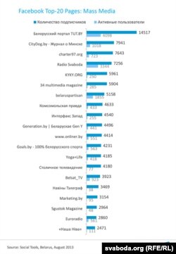 У Facebook старонка Радыё Свабода налічвае 7,8 тысячы чалавек. Паводле інфармацыі Marketing.by, наша старонка у жніўні займала 4-е месца па агульнай колькасьці падпішчыкаў і 2-е — па колькасьці актыўных карыстальнікаў сярод усіх беларускіх мэдыяў, саступаючы толькі Tut.by