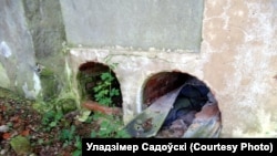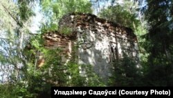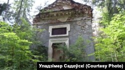 — Я здымаю для гісторыі і гляджу, што нарабілі бальшавікі пасьля сябе. Вось капліца. Яна так зараз выглядае. Там ёсьць надпіс, герб. Што нарабілі гэтыя людцы! Каб быў дах, дык, можа, што і захавалася б. А цяпер... Вось падвал. Бачыце? Нехта лазіў шукаў скарб. У магільных нішах.