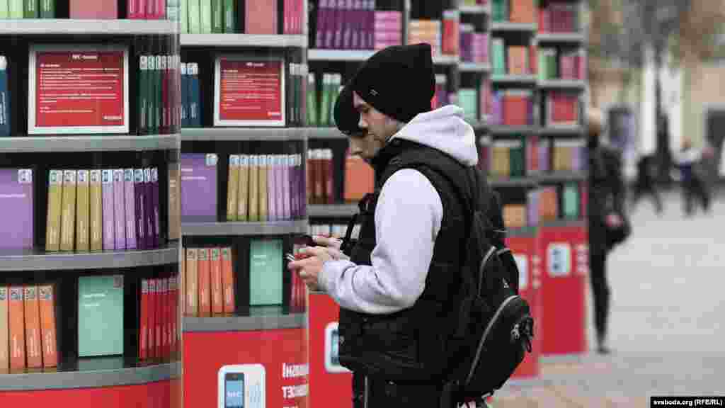На плошчы Якуба Коласа ў Менску адкрылася «Мабільная бібліятэка», скарыстацца якой можа любы ўладальнік смартфона ці пляншэта.