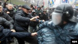 Як перадае карэспандэнт Украінскай службы Бі-бі-сі, спэцпадразьдзяленьні ўжылі супраць пратэстоўцаў сьлезацечны газ, супрацоўнікі «Бэркута» бяруць плошчу ў аблогу.