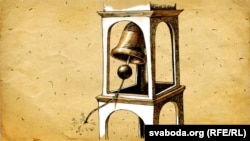 «...Касьцёл нібыта нейкай страшнай рукой быў падняты ўверх, а потым пачаў таяць на вачах. Ён апускаўся ўніз. А калі напалову зьнік, зьнізу падняліся клубы густога пылу. А зьверху апускаўся дах, які схаваўся ў пылавым воблаку...»