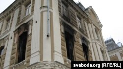 Вокны на другім паверсе зьлева зеўраюць. Калі ўваходзіш у будынак, зьлева яшчэ капае вада. Направа — пакой дзяжурнага. На другім паверсе бачныя вынікі пажару, але пакой ня выгараў цалкам.
