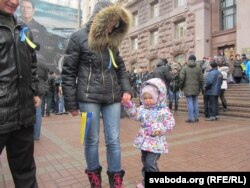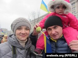 Ігар з Аленай і іхная дачушка Дарынка адразу перадаюць прывітаньне «братняй Беларусі»: «Мы зь сям’ёю зь першых дзён на Майдане. Я быў у ахове студэнтаў як раз у той дзень, калі іх разганялі. Мы прыйшлі ўсёй сям’ёй абараніць нашую Ўкраіну ад улады, якая зьнішчае народ».