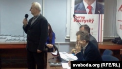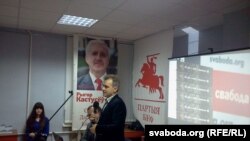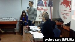 Слова даецца кіраўніку партыі «Справядлівы сьвет» Сяргею Калякіну, які прызнаецца, што не чакаў, што давядзецца тут выступіць.