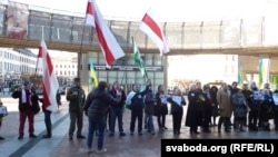 «Мне патэлефанавалі прадстаўнікі ўкраінскай дыяспары Бэльгіі. Сказалі, што будуць ладзіць каля Эўрапарлямэнту акцыю салідарнасьці з суайчыньнікамі, якія патрабуюць збліжэньня з Эўропай. Мы вырашылі падтрымаць украінскіх братоў, прыехалі ў Брусэль, разгарнулі побач з плякатамі і жоўта-блакітнымі сьцягамі нашы бел-чырвона-белыя сьцягі. Разам памаліліся за народ, прадстаўнік партыі «Свабоды» прачытаў зварот да эўрапейскіх палітыкаў – пра тое, каб яны паспрыялі памкненьням украінцаў быць разам з Эўропай, а не з Расеяй».