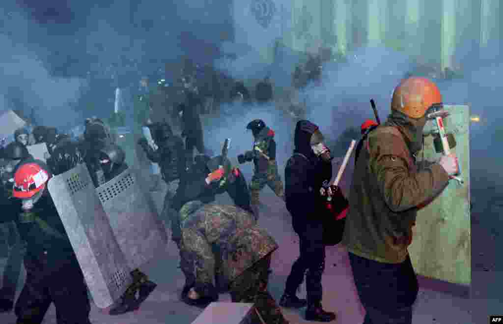 Кіеў: Сутычкі дэманстрантаў зь міліцыяй і пасьля іх