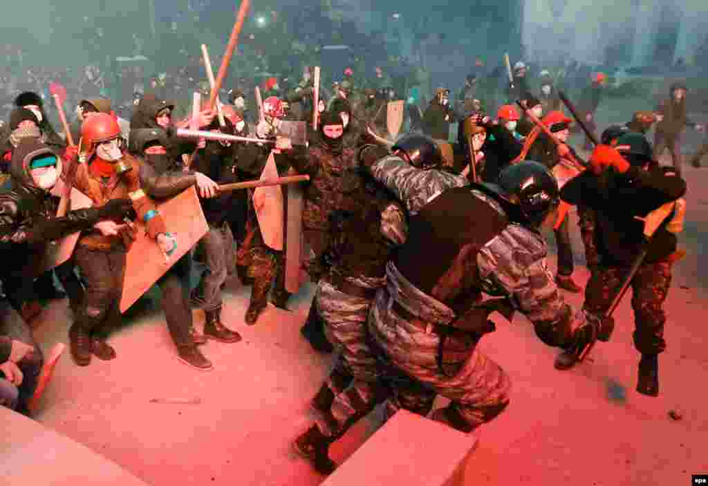 Ukraine -- Protesters clash with riot police, Kyiv, 19Jan2014