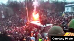 - Падчас сутычак у Кіеве невядомыя падпалілі аўтобус міліцыі