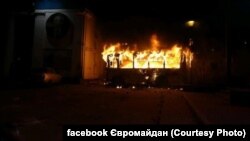 - Падчас сутычак у Кіеве невядомыя падпалілі аўтобус міліцыі