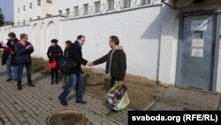 Анатоля Лябедзьку ля брамы турмы сустракалі каля 20 актывістаў АГП.