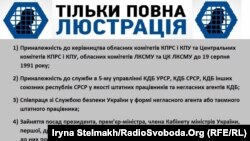 Ідэя люстрацыі набірае абароты ва Ўкраіне. Нядаўняе апытаньне паказала, што амаль 80% рэспандэнтаў падтрымліваюць такі захад. Тэрмін люстрацыя (ад лацінскага дзеяслова lustrare — урачыста ачысьціць) адносіцца да палітычнага захаду, які імкнецца ачысьціць новы рэжым ад перажыткаў мінулага. Працэс уключае ў сябе праверку новых службовых асобаў (выбраных або назначаных) наконт іх дачыненьняў з ранейшым рэжымам і ўстанаўляе некаторыя наступствы для тых, якія такія дачыненьні мелі. Гэткімі наступствамі могуць быць: публікацыя інфармацыі аб супрацоўніцтве з ранейшым рэжымам; звальненьне з пасады; забарона займаць некаторыя пасады.