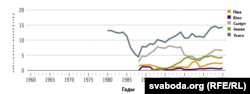 У Польшчы выпіваюць у сярэднім 12,5 літра ў год, у Латвіі — 12,3, ва Ўкраіне — 13,9, у Эстоніі — 10,3, у Грузіі — 7,7, у Германіі — 11,8, у Вялікабрытаніі — 11,6, у ЗША — 9,2.
