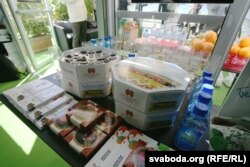 «Частуйцеся, усё беларускае, акрамя шампанскага», — Ждановіч заклікае людзей заходзіць у павільён.