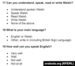 Яшчэ кельты. Валія (Уэльс) — калісьці першая калёнія Ангельшчыны, а сёньня складовая частка Злучанага Каралеўства. Моўнае пытаньне перапісу: