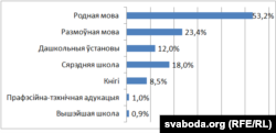 Вось жа, паводле афіцыйных зьвестак, дома звычайна размаўляе па-беларуску толькі 23,4% (сярод этнічных беларусаў — 26,1%). У той час калі, паводле многіх сацыялінгвістаў і паводле UNESCO, крытычны парог самаўзнаўленьня для мовы — 30% практычных носьбітаў.