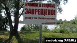 Тут адміністрацыя Цэнтральнага раёну ўсталявала папераджальныя шчыты: «Купание в водоёме запрещено! Штраф от 1 до 3 базовой величины».