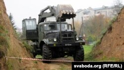 Актывіст БХД Павал Пракаповіч, які зранку прысутнічае на месцы працаў, сьцьвярджае, што яны вядуцца неналежным чынам. Яму капалі звычайным каўшом, парэшткі проста скідаюць у мяхі.