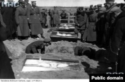 Калі супаставіць гэтыя факты... Першая сусьветная. Санітарныя эшалёны ў Красным. Пахаваньне памерлых ад ран. І створаны на тэрыторыі Беларусі генэралам Юзафам Доўбар-Мусьніцкім у ліпені 1917-га Першы Польскі корпус... Дык атрымліваецца, што гэта магіла былых расейскіх вайскоўцаў польскай нацыянальнасьці, якія той корпус і складалі. Але Аляксандар Харытон гэтую вэрсію адкідае. Стары красьненец ня можа пагадзіцца з тым, што ў той магіле ляжаць не паўстанцы.