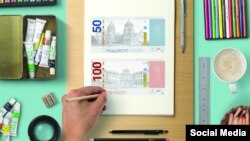 На эскізах купюраў рублі ўжо дэнамінаваныя, бяз трох нулёў.