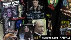 Натоўпу прыхільнікаў Уладзімера Пуціна каля прылаўку не відаць. На бліжэйшым «Стралецкім» кірмашы, таксама няма ажыятажу каля адпаведнага аддзелу. Маек з партрэтамі расейскага прэзыдэнта тут няма, але ёсьць майкі іншай тэматыкі — для прыхільнікаў «рускага сьвету». «Сьвятая Русь», «Я расеец» і іншыя подпісы суправаджаюць адпаведныя карцінкі.