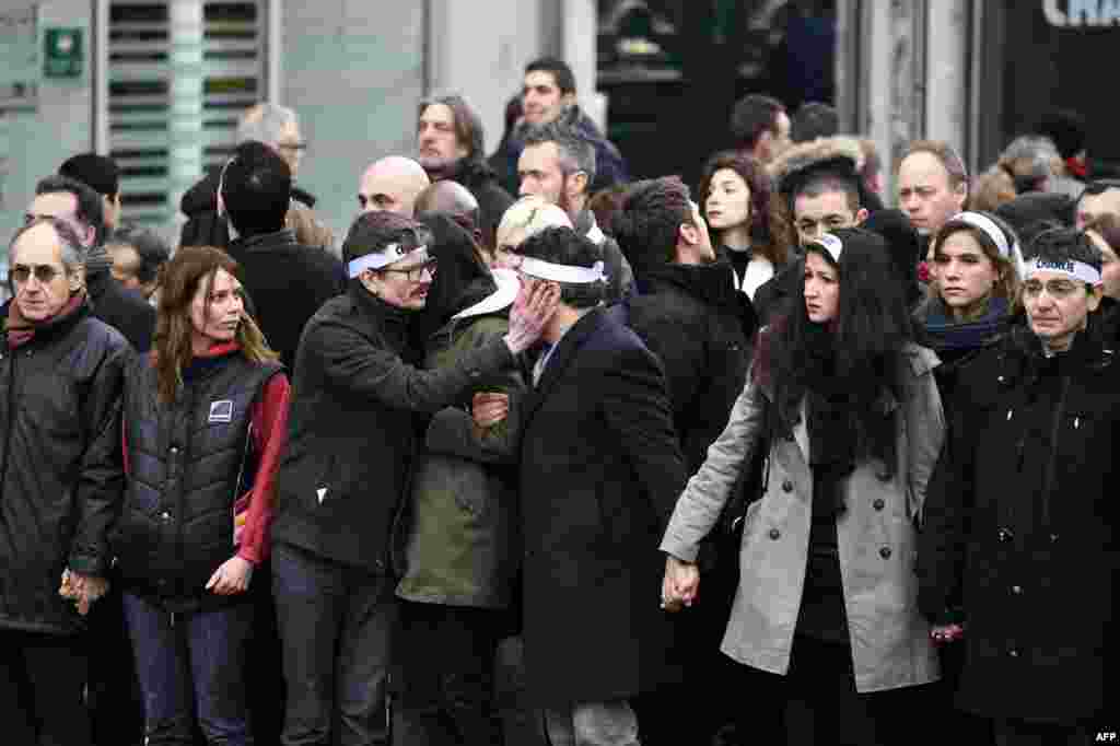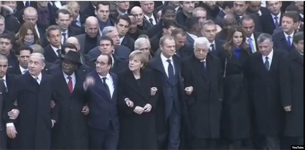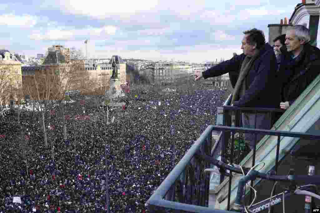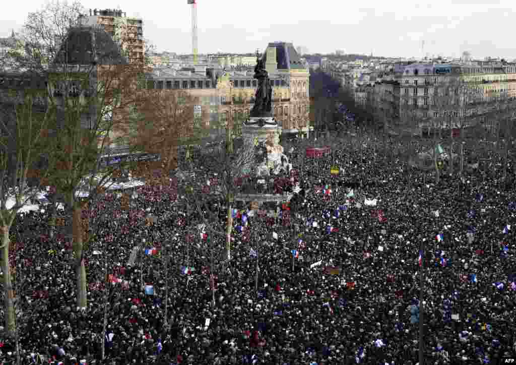 Велізарная колькасьць парыжанаў бярэ ўдзел у «маршы адзінства», які арганізаваны ў знак салідарнасьці і ў памяць ахвяр тэрактаў апошніх дзён.