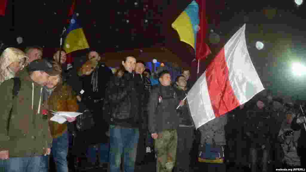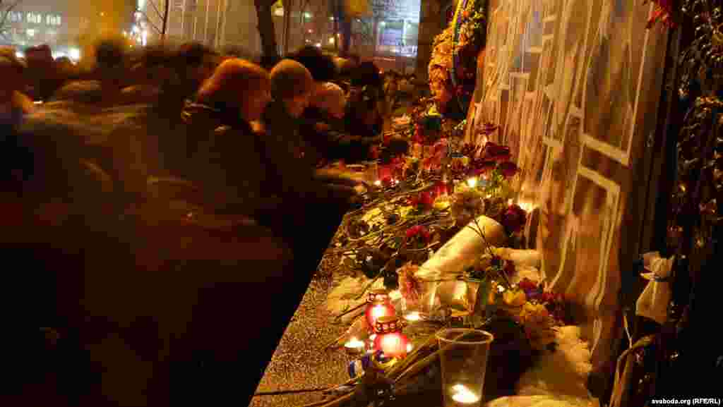 Каля 2 тысяч чалавек удзельнічалі сёньня ў акцыі памяці Жызьнеўскага, Нігаяна ды іншых актывістаў, якія былі забітыя год таму падчас пратэстаў у Кіеве. Акцыя пачалася на майдане Незалежнасьці, пасьля кароткага мітынгу яе ўдзельнікі прайшлі да вуліцы Грушэўскага, дзе працягнулі мерапрыемства.
