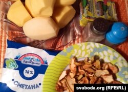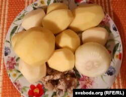Што спатрэбіцца: бульба, цыбуля, соль, алей, сьмятана.
