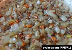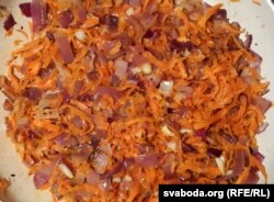 У гэты час на патэльні смажым цыбулю на масьле, але не да поўнай гатоўнасьці. І не забудзьцеся пасаліць.