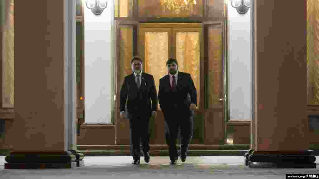 У ім узялі ўдзел экс-прэзыдэнт Украіны Леанід Кучма, спэцпрадстаўнік АБСЭ Хайдзі Тальявіні, амбасадар Расеі ў Кіеве Міхаіл Зурабаў. А таксама прадстаўнікі ДНР і ЛНР Дзяніс Пушылін і Ўладзіслаў Дайнэга. У сустрэчы браў удзел таксама кум расейскага прэзыдэнта Віктар Медзьвядчук. Раней паведамлялася, што Медзьвядчук інкарпаваны ў працэс вызваленьня закладнікаў і палонных. Удзельнікі сустрэчы па прыезьдзе ў Менск адмовіліся ад камэнтароў прадстаўнікам мэдыяў.