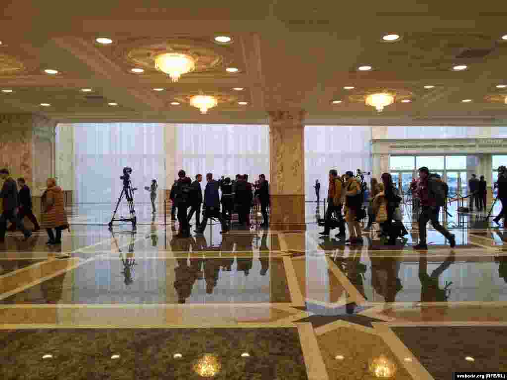 ФОТАГАЛЕРЭЯ: У калідорах Палаца незалежнасьці перад пачаткам перамоваў