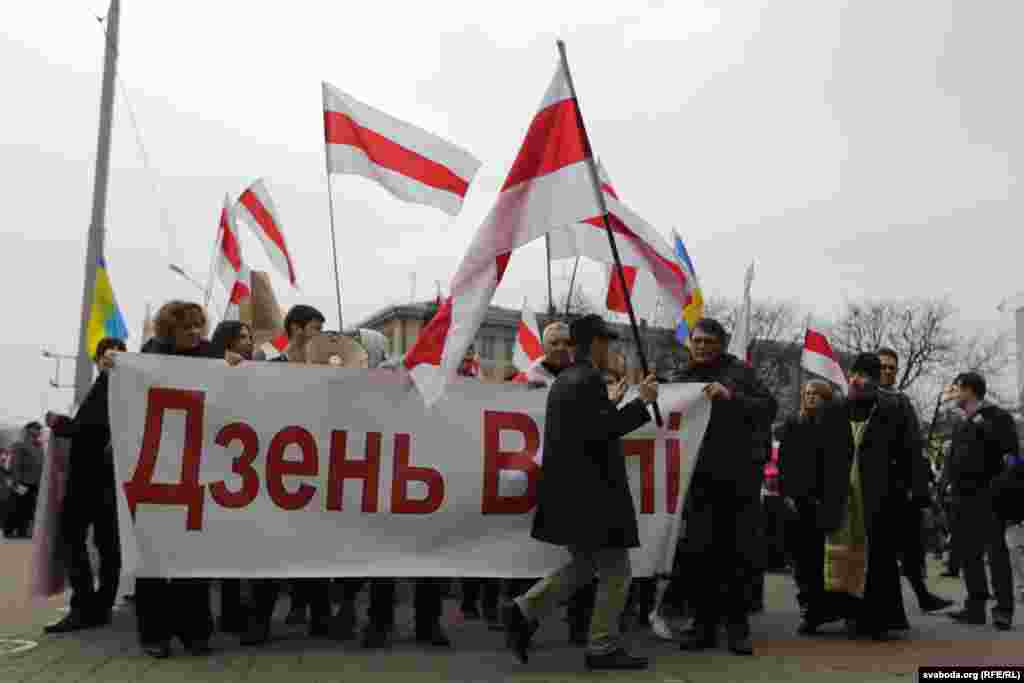 У Менску адбылося масавае шэсьце з нагоды Дня Волі. Удзел у акцыі ўзялі больш за тысячу чалавек.