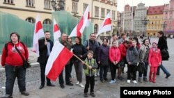 З прамовай пра гістарычнае значэньне для беларусаў даты 25 сакавіка выступіў кіраўнік фонду «За волю нашу і вашу» Мікалай Іваноў. Пасьля выступу беларусы і салідарныя зь імі палякі некалькі разоў выгукнулі «Жыве Беларусь!»