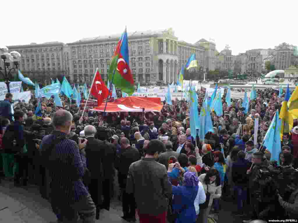 18 траўня ў Кіеве на Майдане Незалежнасьці некалькі тысяч чалавек сабраліся, каб ушанаваць ахвяраў дэпартацыі крымскататарскага народу, якая адбылася ў 1944 годзе.