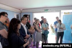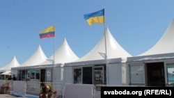 Сёлета ў нацыянальным украінскім павільёне зьбіраюць подпісы за вызваленьне ўкраінскага рэжысэра і сцэнарыста, актывіста Эўрамайдану Алега Сянцова. Яго арыштавалі летась у Крыме — паводле расейскіх уладаў, украінскі рэжысэр рыхтаваў сэрыю тэрарыстычных актаў у Крыме. Абвінавачаньні Сянцоў абвяргае.