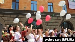 Адна з клясаў вырашыла зрабіць сьвята ў белых і чырвоных колерах, з гэтай нагоды адмыслова вырабілі стужкі «выпускнік» зь беларускім арнамэнтам і запусьцілі ў неба белыя і чырвоныя балёнікі.
