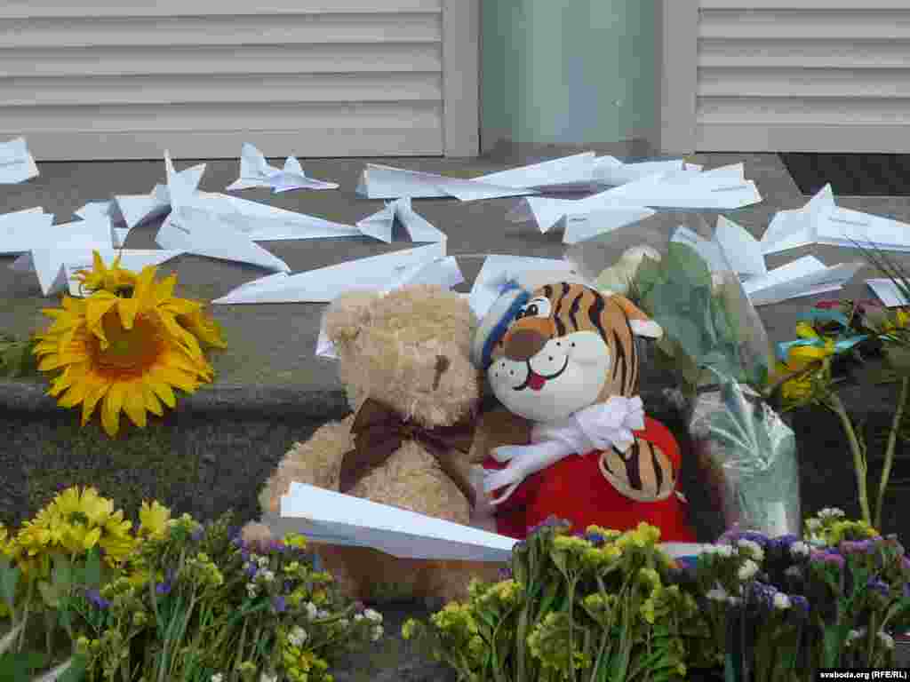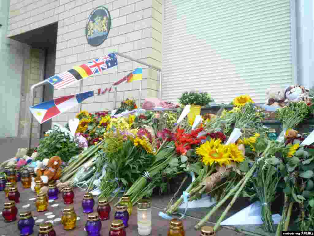 Учора ў Кіеве, як і год назад, сотні жыхароў украінскае сталіцы прынесьлі на ганак амбасады Нідэрляндаў кветкі і дзіцячыя цацкі. Побач — папяровыя самалёцікі — сымбаль трагедыі рэйсу МН17.