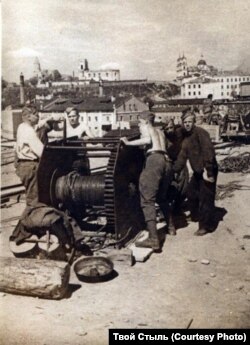 Сучасную маставую канструкцыю вайскоўцы нацягвалі на рэшткі старога моста пры дапамозе такіх вось лябёдак.