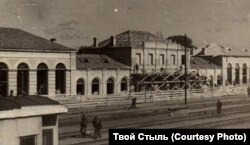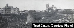 Усё што засталося ад Сяннога рынка і забудовы вуліцы Мяшчанскай. Дамы зьлева захаваліся і маюць сёньня адрас вул. Сацыялістычная. 1944 г.