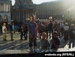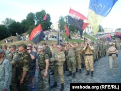 На пачатку акцыі на плошчу ўвайшлі вайскоўцы добраахвотных аадзелаў «Правага сэктару» — пад песьню «Воины Света» (на відэа).