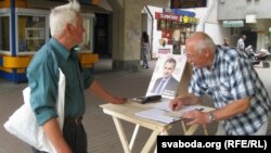 На пікетах па зборы подпісаў за прэтэндэнтаў у кандыдаты на прэзыдэнта ў Горадні можна пабачыць амаль усе выбарчыя атрыбуты: дыскусіі, агрэсію, абыякавасьць, пачуць рэзкія словы і пэсымістычныя выказваньні.