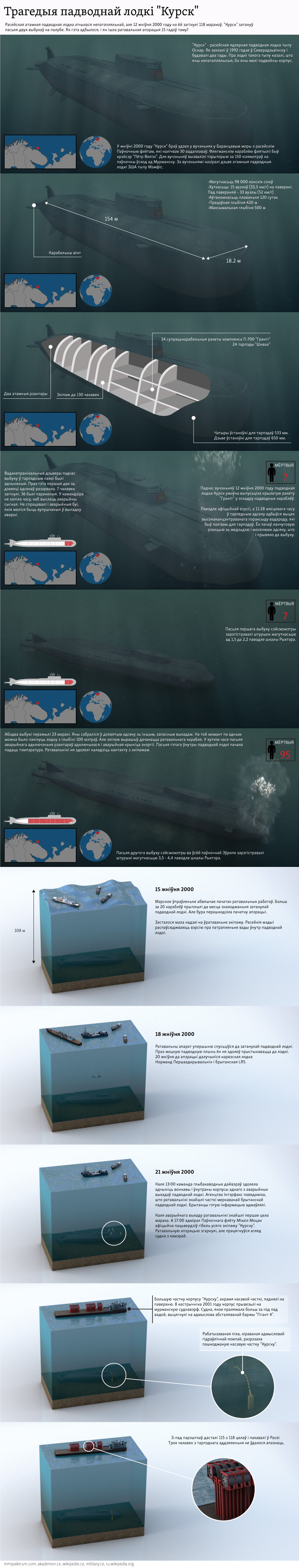 Расейская атамная падводная лодка лічылася непатапляльнай, але 12 жніўня 2000 году на ёй загінулі 118 маракоў. "Курск" затануў пасьля двух выбухаў на палубе. Як гэта адбылося, і як ішла ратавальная апэрацыя 15 гадоў таму?