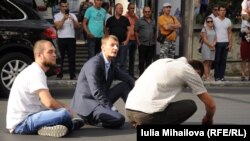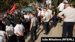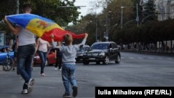 Актывісты не перашкаджаюць руху транспарту ў цэнтральнай частцы малдаўскай сталіцы, вуліцы ўзмоцнена патрулююць праваахоўнікі.