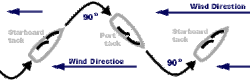 Застаецца значэньне тэрміналягічнае, вузкае, вядомае абсалютнай бальшыні сухаземных беларусаў толькі з марскіх кніжак: 'рухацца пад ветразямі супраць ветру, мяняючы кірунак'. І ў ангельскай, і ў сучаснай нямецкай гэтае паняцьце перадаюць словы, зьвязаныя з шытвом, як бел. фастрыгаваць або крыжаваць. Невыпадкова: