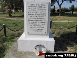 Вячаслаў Сіўчык з паплечнікамі ўсклаў кветкі да помніку ахвярам Бяроза-Картускага канцэнтрацыйнага лягеру, які дзейнічаў падчас уваходжаньня заходнебеларускіх зямель у склад Польшчы.